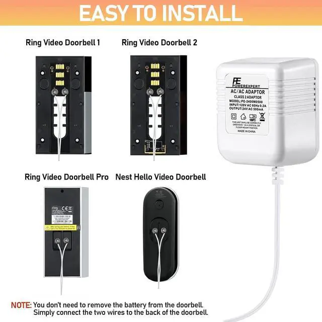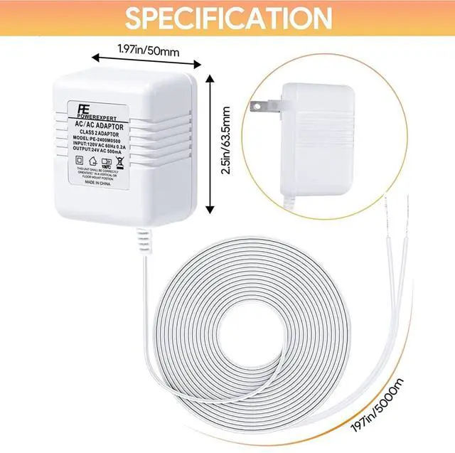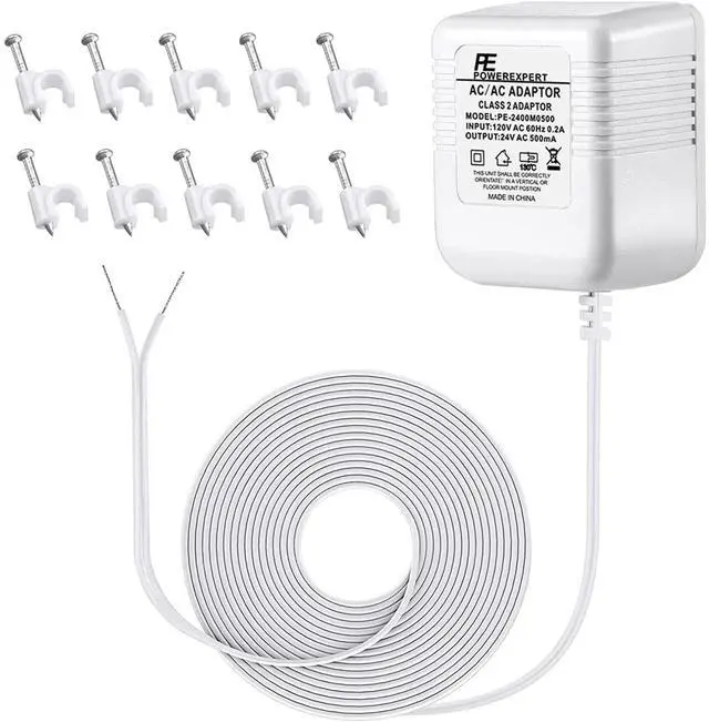 Wide Compatiblity - 24v universal US power cable powers popular smart doorbells. Compatible with Ring video doorbell (2020 release, 3/4/plus, and pro 1/2), Nest, Eufy, Skybell, Arlo, etc. Continuously converts 110/120v to 24volt 500ma.