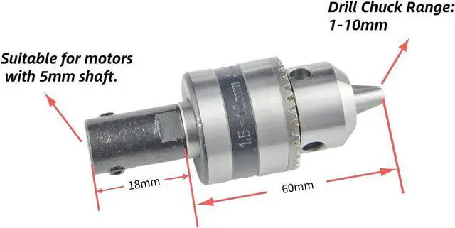 *The specification of the Drill Chuck: Model : B10 Mount: 3/8"-24UNF Material:Main Material Metal Drill Chuck Range : 1.5-10mm Length of Connecting Rod:18mm; Length of Drill Chuck:60mm; Suitable for motors with 5mm shaft.