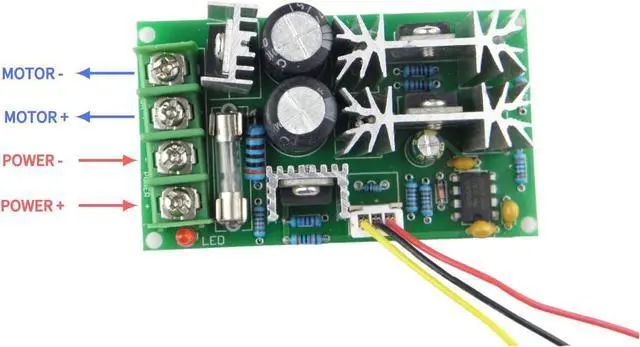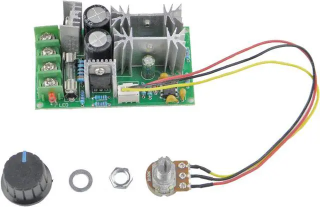 *The specification of the speed controller: Input Voltage: DC 10V-DC 60V (Ultra wide working voltage) Output voltage: linear under load Control Power: 0.01-1200W Rated Current: 10A Max Current: 20A (Long-term use of 10A, 450W or less, pay attention to keep the module free of heat dissipation conditions.) PWM Duty Cycle: 0%-100% PWM Frequency: 25Khz Product Size(L x W x H): 77*45*28mm.