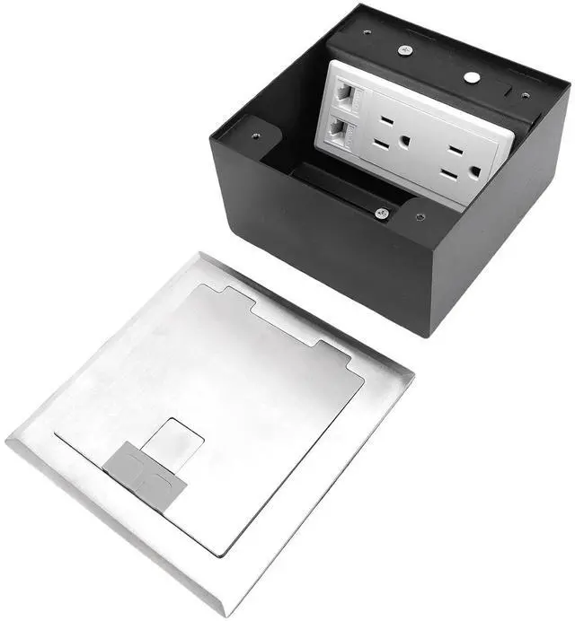Versatile Connectivity: The recessed floor socket features two receptacles and two network ports, allowing multiple devices to be connected simultaneously.