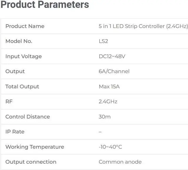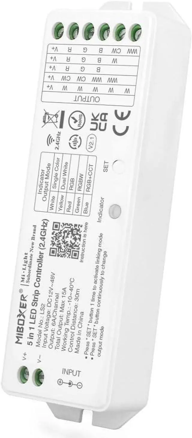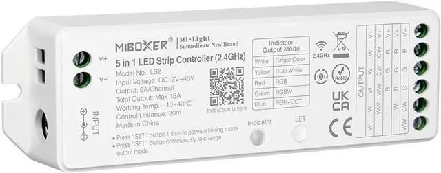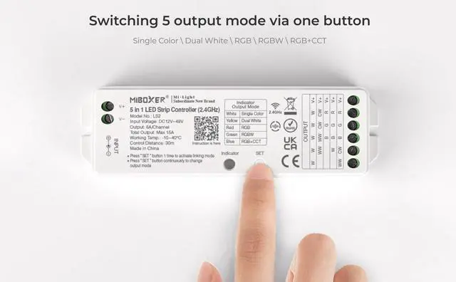 Switching 5 output mode via one button (Single color / Dual white / RGB / RGBW / RGB+CCT)