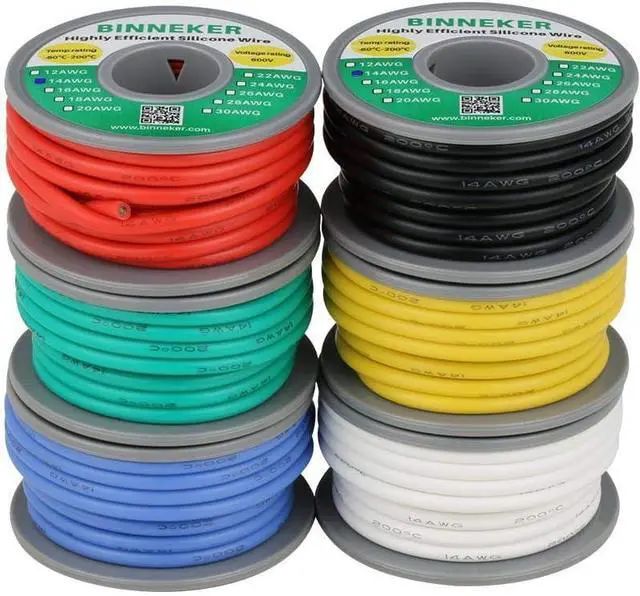 14 gauge silicone wire kit: 6 colors,Red Black White Blue Green Yellow,each color 5m,total 30m.