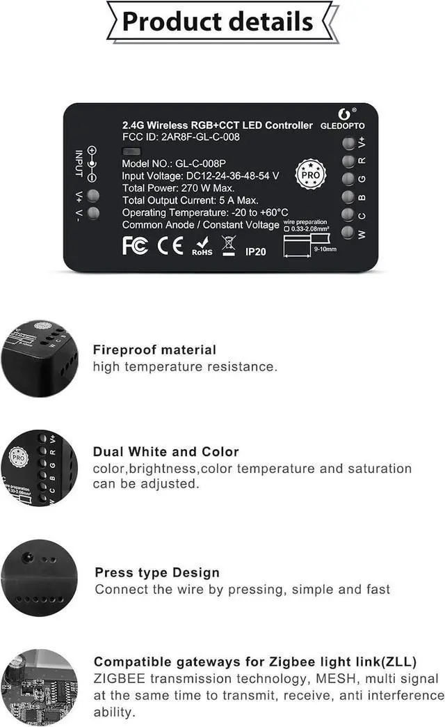 WIDE COMPATIBILITY: Our Zigbee RGB CCT/RGBW /WW CW and Dimmer Controller works with ZigBee Light Link(ZLL), compatible with zigbee gateways and Android iOS system, smart phone app control.