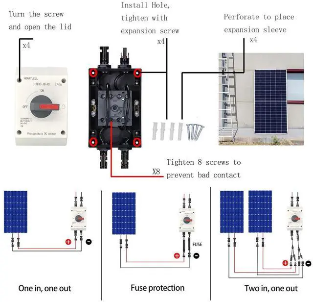 WIDE RANGE OF APPLICATION: The solar disconnect switch is used to switch off all poles of the solar module. It is installed on the string line between the module and the grid inverter or controller, for Solar Power System RV Solar System