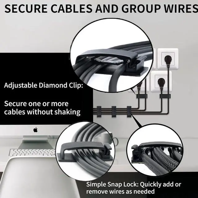 [Wide Application] The adhesive cable organizer is very suitable for organizing all kinds of cables, including power cord, network cable, audio cable, video cable, computer cable, USB cable, TV cable, Christmas light cable, etc. It is widely used in homes, offices, data centers, and automobiles.