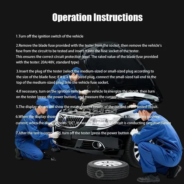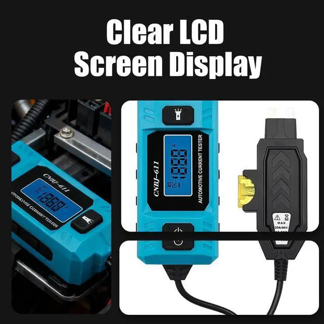 Clear LCD Screen DisplayFuse tester Instantly shows precise current values while clearly indicating positive DC or underlined negative DC circuits. automotive relay tester eliminates guesswork during diagnostics, fuse test device letting users quickly grasp circuit status for efficient troubleshooting and accurate fault identification.