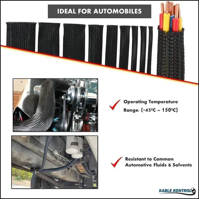 USAGE: Nylon braided cable sleeve is ideal for automobiles, cable management, & protecting cables from pets