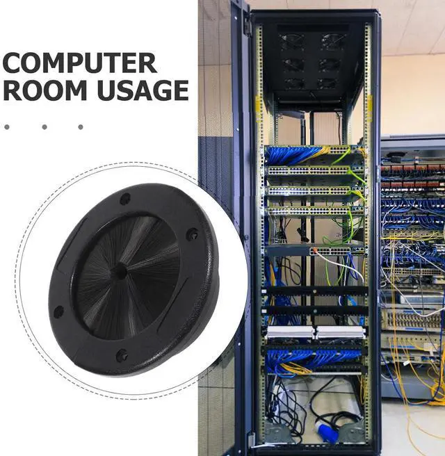 Compact and Functional Size: Measuring 5.7 inches, this black desk grommet provides an efficient cable brush seal for server floors, enabling organized cable routing and easy installation compared to bulkier wire brush grommets