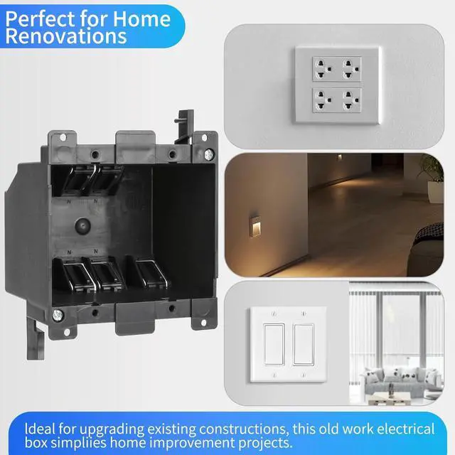 [Perfect for Home Renovations]: Ideal for upgrading existing constructions, this old work electrical box simplifies home improvement projects. Its user-friendly design eliminates the stress of complex installations, helping you create a safer, more comfortable living space without the headaches.