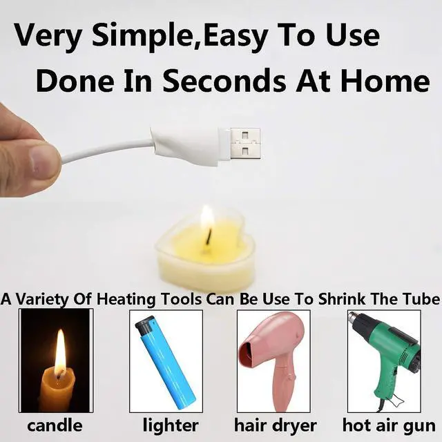 BE CAREFUL- make sure that the circumference of the maximum position that needs to be crossed is not more than 44mm (the circumference of the tube is 44mm). The heat shrinkable tube is only used to repair and protect the outer layer of the cable. If the inner part has been damaged (no power, can not be used), it can not be repaired.Suit for Almost all Phones Computers and Chargers Cablesuch as Headphone CableMacBook AirPro Charger CableUSB Data,Type C,iPhone Lightning CableHDMI Cable