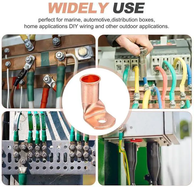 These battery terminal connectors are designed to provide a secure connection between battery cables and terminals, preventing power loss and voltage drops. These copper lugs are safe and reliable to use with heat shrink tubing, perfect for marine, automotive, distribution boxes, golf carts, solar panels, boats, home applications, vehicles, motorcycles, DIY wiring and other outdoor applications.