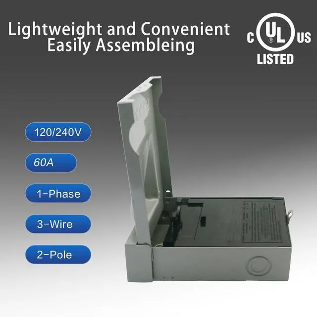Efficient 60 Amp Disconnect: Meticulously designed with a 60A 120/240V, single-phase, 3-wire, 2-pole switch, without fuses, and UL certified. Its outstanding capability to handle electrical loads not only signifies efficient performance but also provides assurance of outstanding safety.Dimensions: 8.86"L x 5.43"W x 2.44"H, Please Check it first