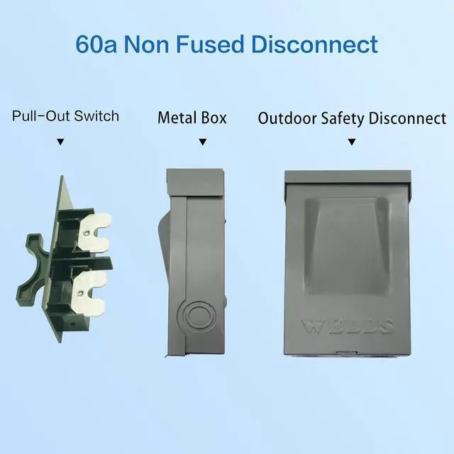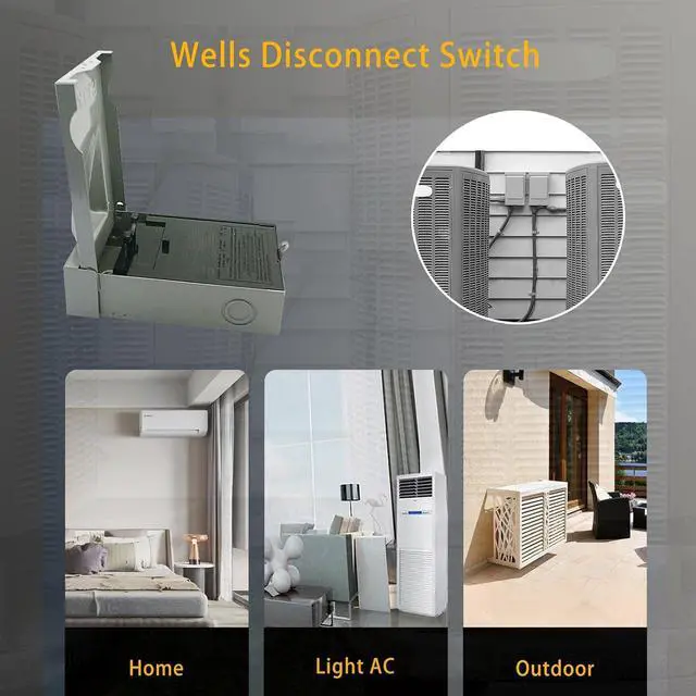 Versatile Applications: Compatible with major brands, this outdoor disconnect switch is suitable for various electrical equipment, including residential and commercial air conditioning units, heat pumps, and units near condensing machines. Wells focuses on high-quality HVAC equipment, providing reliability and convenience for your electrical needs