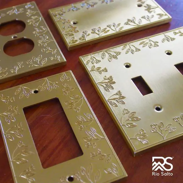 Elegant Floral Detailing Wall Plate Covers from Rio Salto Delicately engraved flower patterns add a graceful, feminine touch that enhances any room with soft sophistication. A perfect upgrade for anyone seeking decorative wall switch plates that blend classic detail with modern style. Receive: 5" x 3.19" Rocker Light Switch Wall Plate Outlet. Medium size to cover wall imperfections.