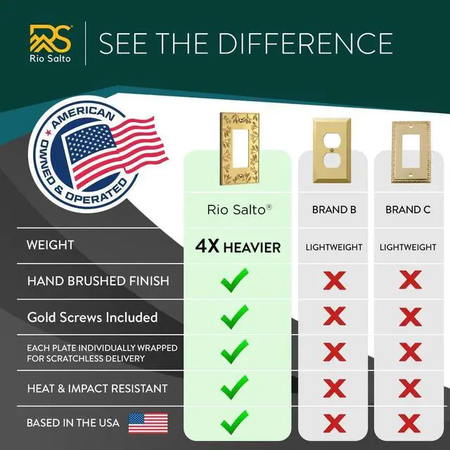 Premium Metal Construction Made with durable materials, this gold light switch cover plate is built to last. Ideal for use with decorative outlet covers wall plate, metal switch plate covers, or light switch plates decorative throughout your home.