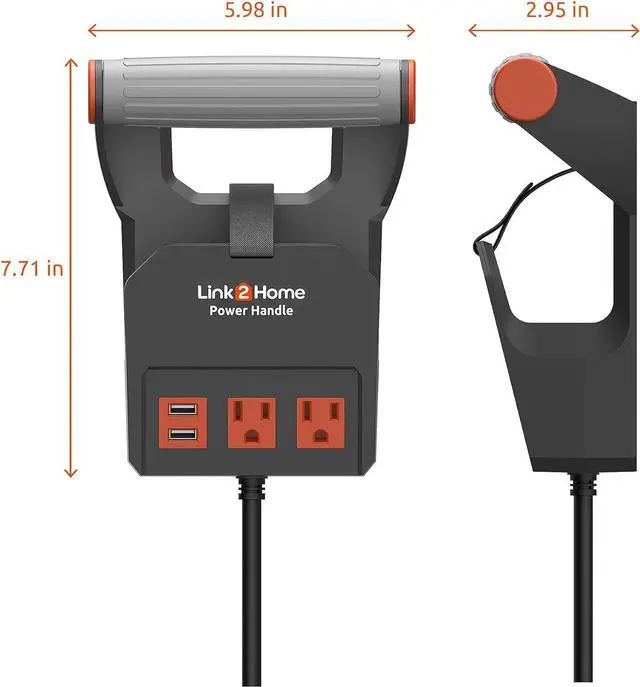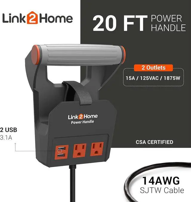 COMPACT INDOOR CORD: This roll-up extension cord is slim and has a unique handle so that it is easy to store and carry anywhere. The Link2Home Power Handle is for indoor use and is ideal for providing outlets in offices, workshops, garages, and more!