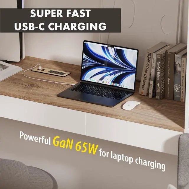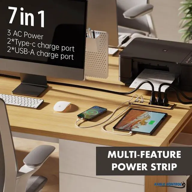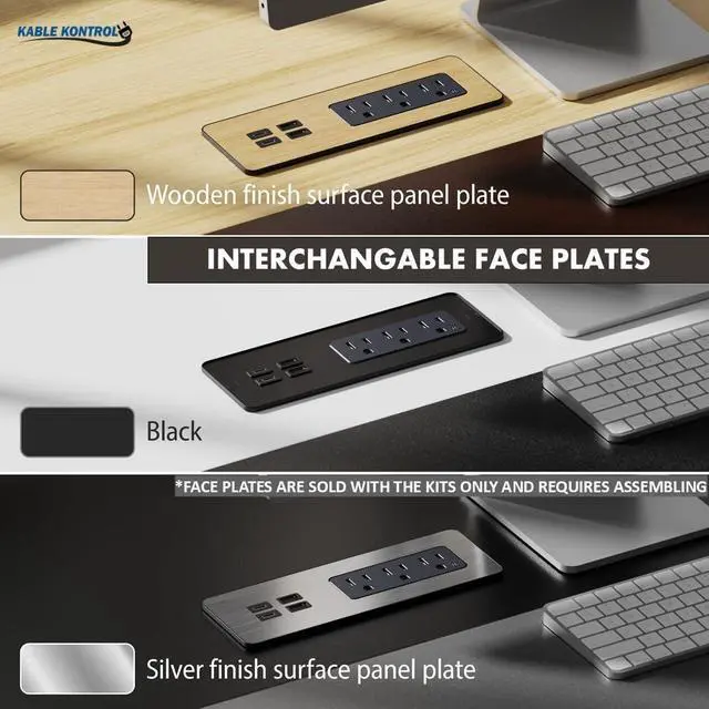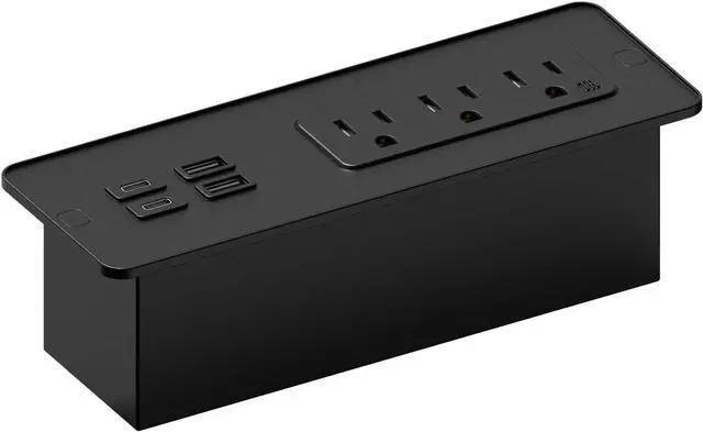 Recessed Power Strip: Requires minimal space beneath the table. Sits in surface post-installation and includes screws for easy mounting.