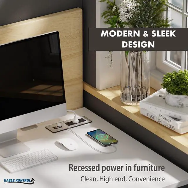 Sleek Design: Ideal power strip for flush mount installation in furniture such as the side table, or the end tables. Perfect for home, hotels, offices etc.
