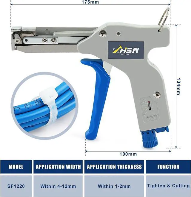Cutting RangeApplicable to cable ties with a width of 4 ~ 12 mm,thickness of 1 ~ 2 mm