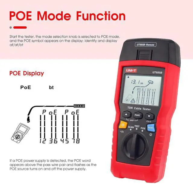 POWER OVER ETHERNET (PoE) TESTING: Power over Ethernet Tester displays PoE wire and voltage information, length measurement, wire locator and tests the faults of LAN network.enabling convenient PoE testing and troubleshooting