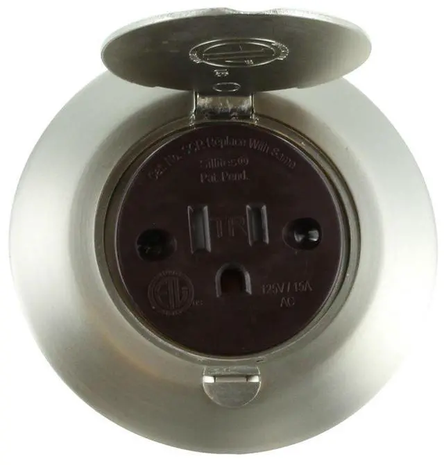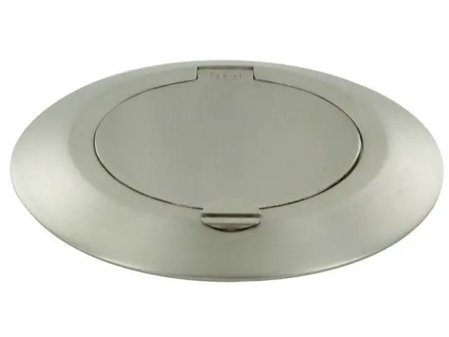 Brushed nickel hinged cover is 3.75" diameter