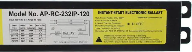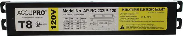 AP-RC-232IP-120 Electronic Fluorescent Ballast, 2-Lamp, T8 F32T8 32W, 120V