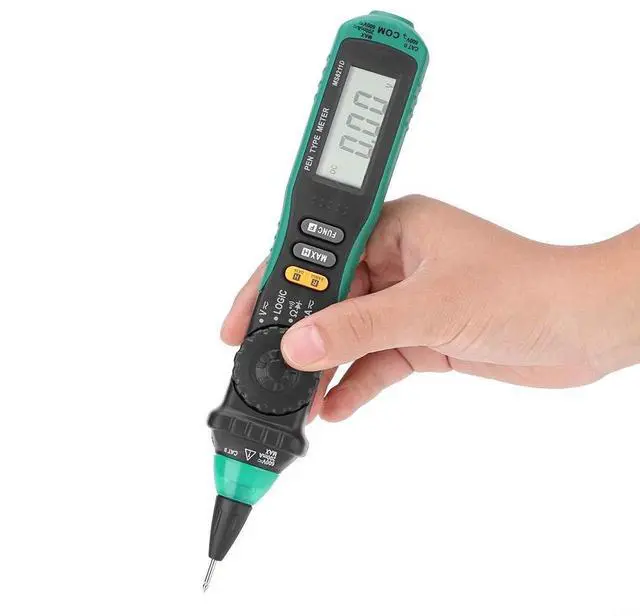 DATA HOLDING SAFE STORAGE -- Retractable tip for safe storage. Data holding and maximum value measuring and holding. Auto power off and low battery indication.