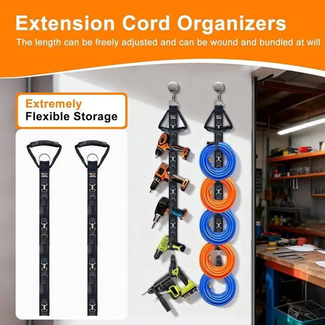 Wide Application: This adjustable extension cord organizer is suitable for various scenarios, including garages, workshops, warehouses, homes, gardens, yard, storage shed, car, boat or RV