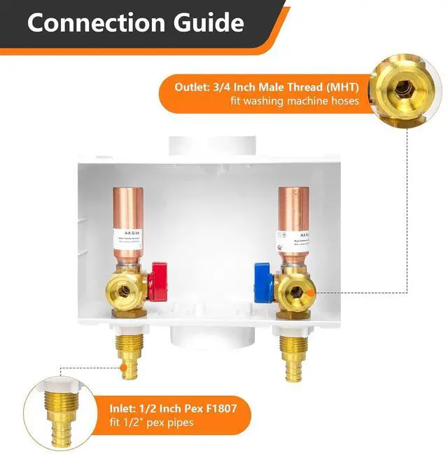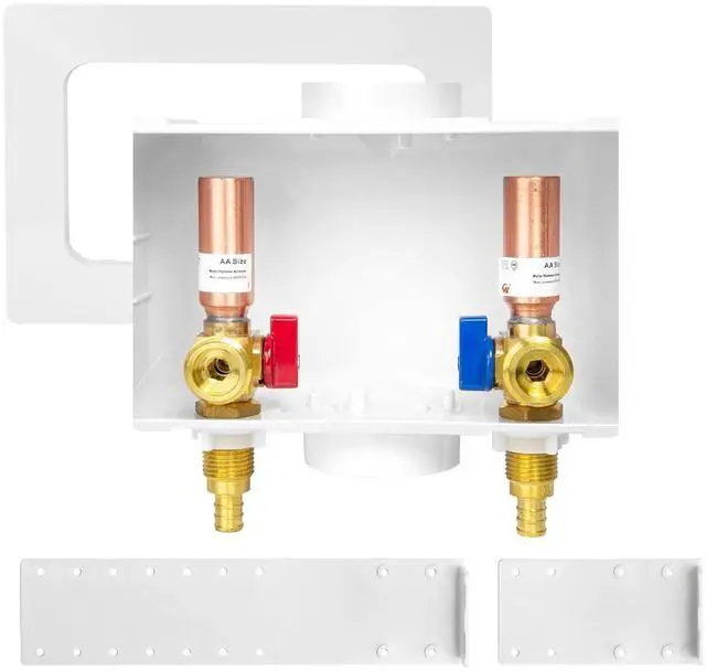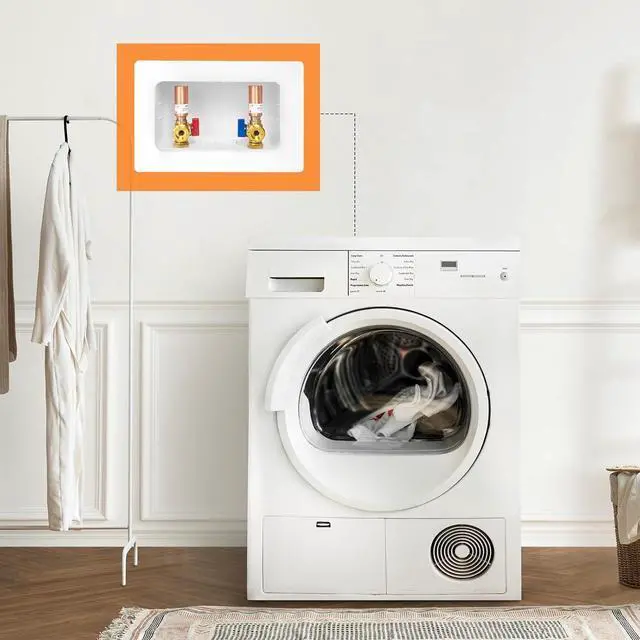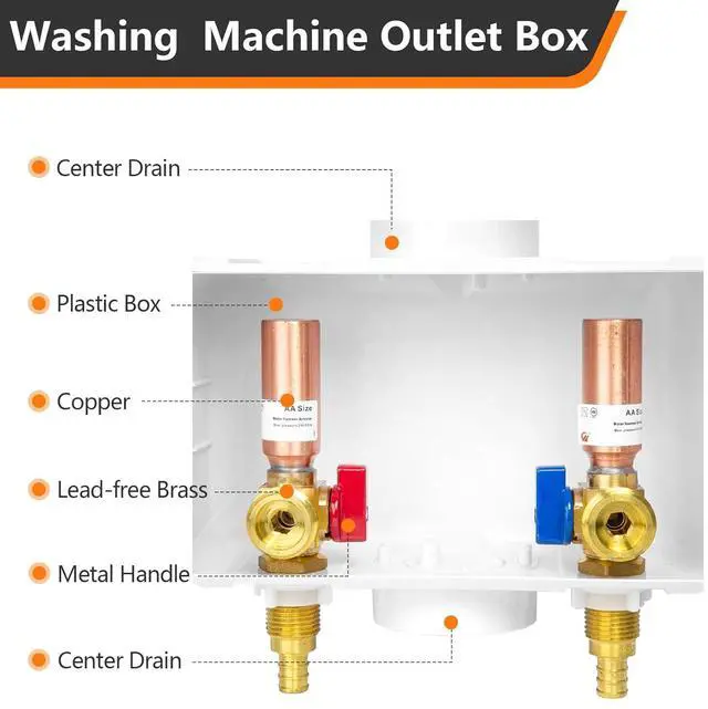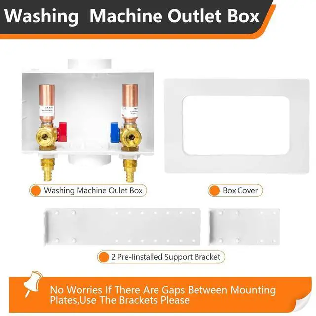 PACKAGE INCLUDE 1.washing machine outlet box,Equipped with a copper arrestor. 2.pre-installed support brackets 3.protective box cover.