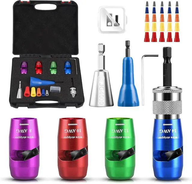 Professional Electrician Tools - Quick Wire strippingBAYAGIN electric wire stripper tool can quickly and accurately strip 14AWG, 12AWG, 10AWG, 8AWG solid core and standard wires insulation. Through an electric drill, the wire sheath will rotate outward along the groove of the wire stripper without harming the wire core. Not only can prevent finger injuries, but also relieve fatigue. Whether it's for home repair or industrial production, it can easily cope with all kinds of wire stripping tasks