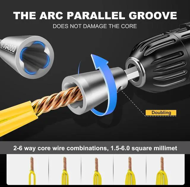 Professional Electrician Tools - Efficient ParallelingEquipped with a wire twisting tool that can connect 2-5 wires in 10 seconds. Used with the insulated flame retardant nylon material wire cap, it can effectively prevent leakage, connect stronger and safer cables, no more sore fingers, save time and labor, and greatly improve work efficiency.