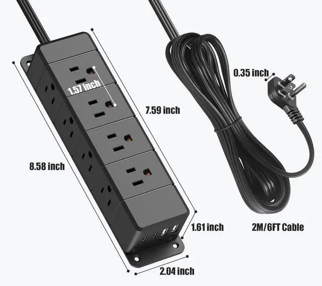 40W Fast Charging Under Desk Power Strip,12 Outlet Mountable Power Strip with 4 USB,1200J Surge Protection,6FT Flat Extension Cord Black Voltage: 125.0 Number of ports: 1 Amperage: 12.0 amps
