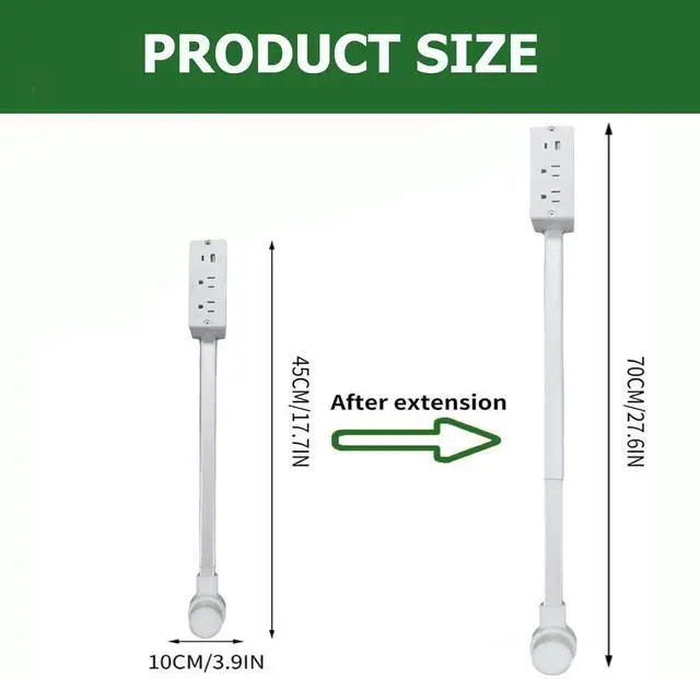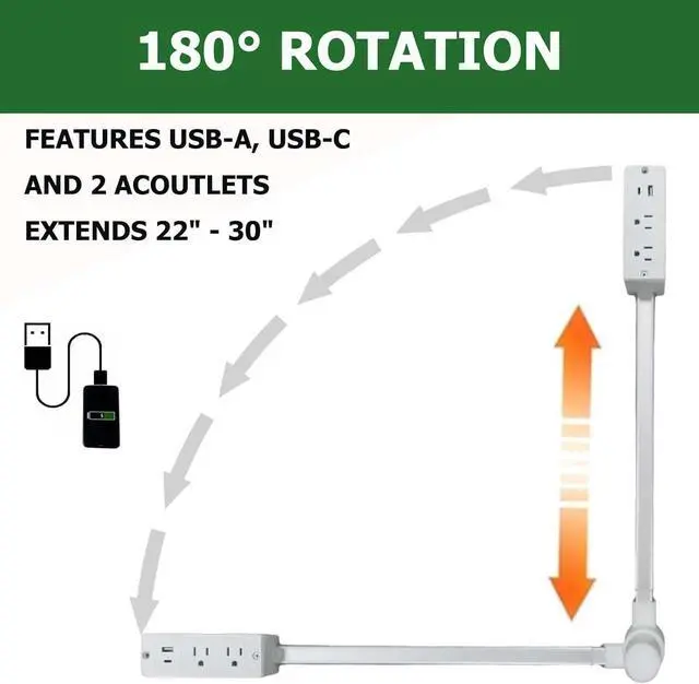 Adjustable & Rotatable Design: Reach behind furniture effortlesslycouches, nightstands, deskswith vertical, horizontal, or angled placement. Extendable arm (22"-34") with 180° rotating base. Perfect for tight spaces and awkward outlets. Extendable outlet extender stick - extendable rotating outlet.