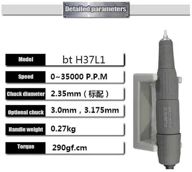 Quiet and Efficient The 35,000 RPM brush-type micromotor has low noise, low vibration, and high torque during operation, ensuring long-term smooth and efficient operation, and stable performance without attenuation.