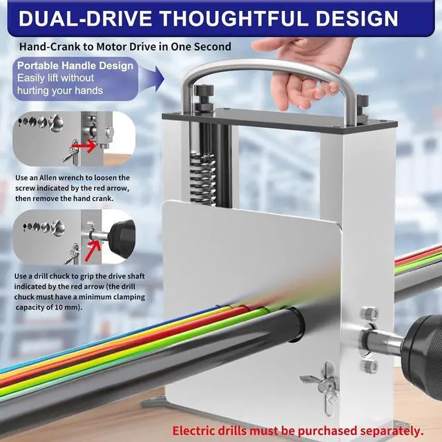 2-in-1 Operation Modes: Switch between comfortable manual cranking for precision or connect an electric drill for high-speed stripping. Enjoy enhanced efficiency and less manual effort in any scenario.