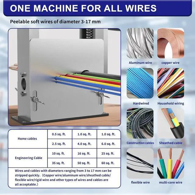 6-Channel Versatility: Strip a wide range of wire sizesincluding 0.12" (3mm), 0.2" (5mm), 0.28" (7mm), 0.35" (9mm), 0.47" (12mm), and 0.67" (17mm)with six dedicated feed channels. It is ideal for single-core cables, household wiring, industrial cables, and scrap copper recycling, saving time and effort across various applications.