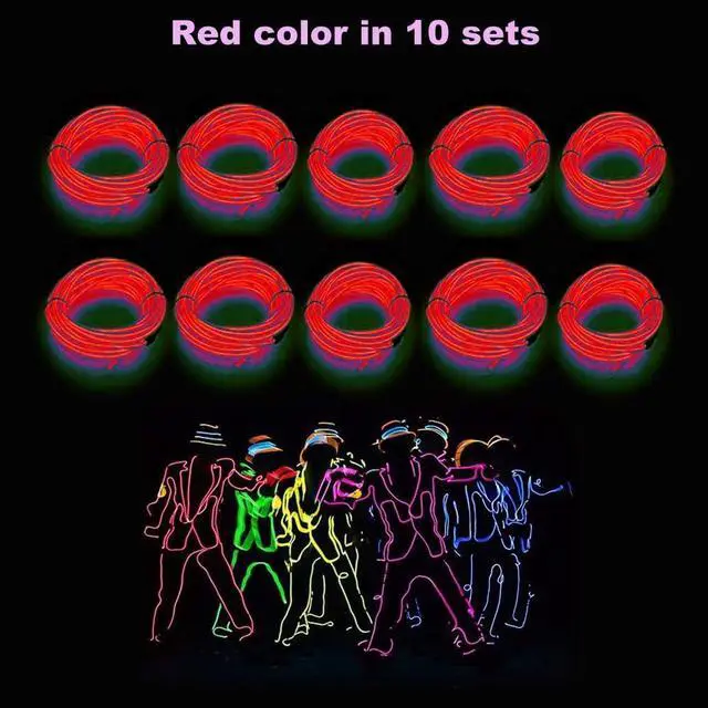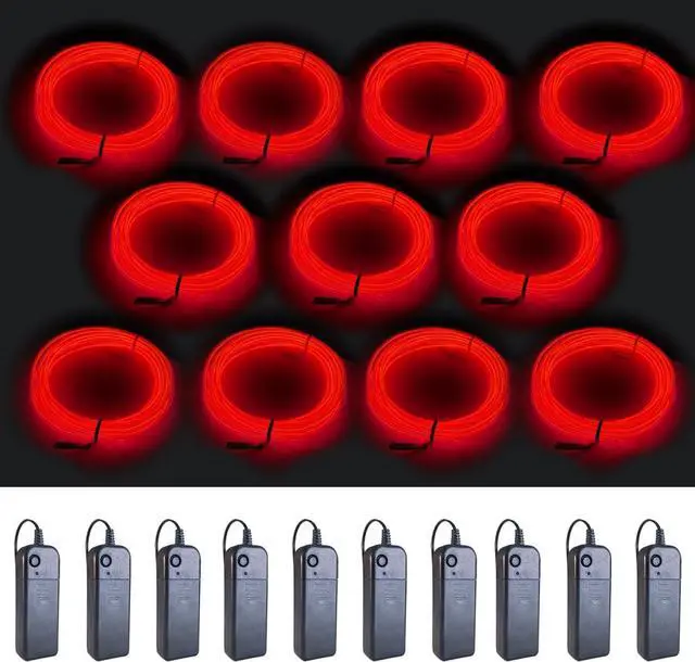 [What You Get]Our Halloween decorative lights include 10 red EL wires and 10 battery packs. Each wire is 16.4ft long with a diameter of 0.09in/2.3mm, powered by 2xAA batteries (not included).