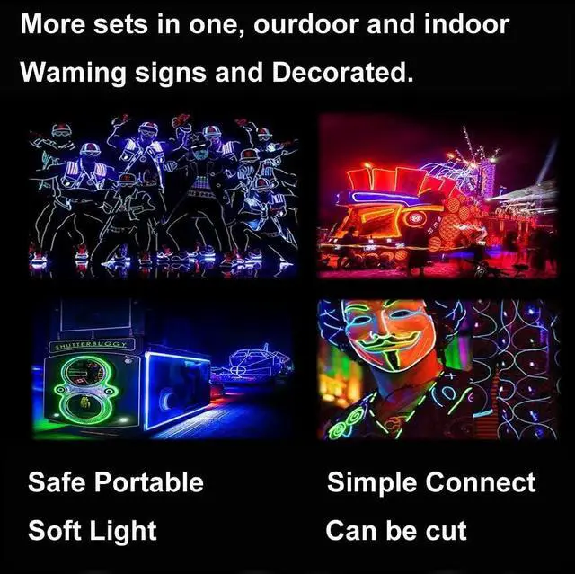 [Safe and Durable] Electroluminescent Wire is easy to use and provides bright lighting, with no radiation and energy-saving features. The EL wire kit is an efficient lighting solution that can be used for clothing, DIY projects, Christmas, or other festivals. Unleash your imagination for versatile enjoyment.