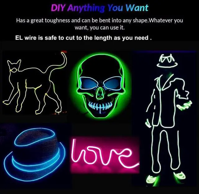 [Flexible and Cuttable] The versatile EL wire is flexible and thin, making it easy to bend into any shape (youll need something else to secure the shape) and cut to any length.
