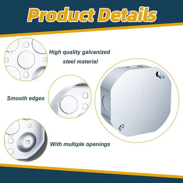 Knockouts Design: The metal junction box has knockouts and comes with matching screws, streamlining the setup procedure and minimizing labor and time investment during installation