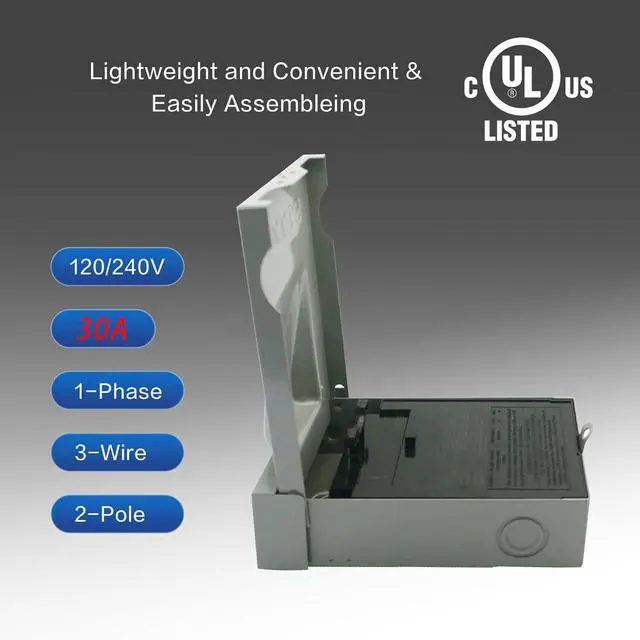 Efficient Performance Excellence: Meticulously designed with a 30A 120/240V, single-phase, 3-wire, 2-pole switch and UL certified. Its outstanding capability to handle electrical loads not only signifies efficient performance but also provides assurance of outstanding safety.Dimensions: 8.86"L x 5.43"W x 2.44"H