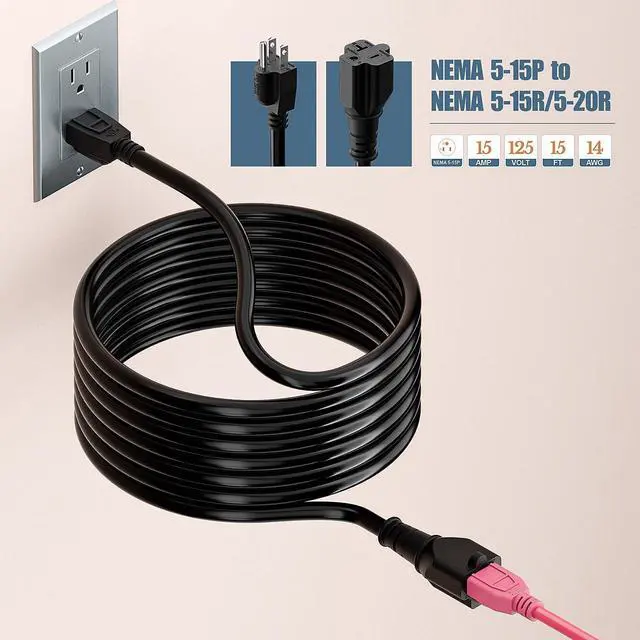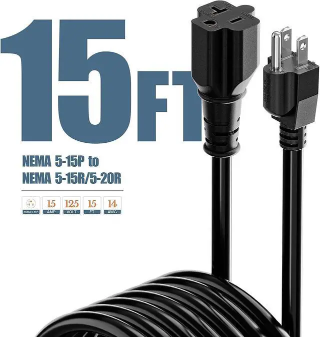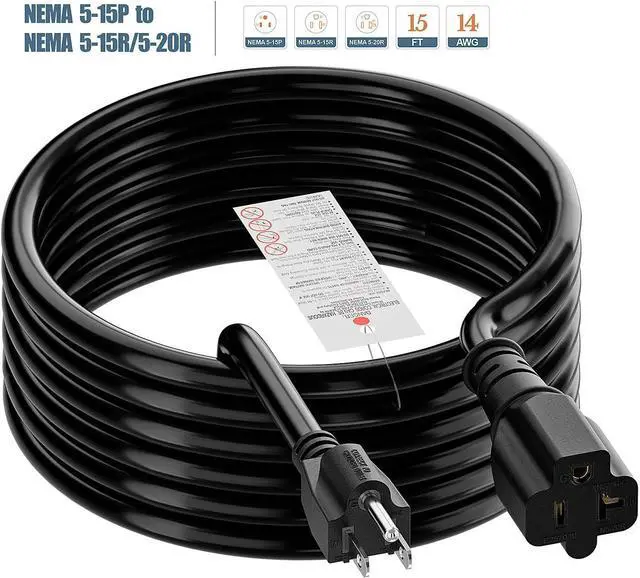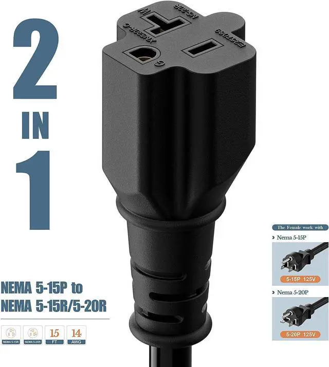 [What You Get] 1 x 15FT NEMA 5-15P to NEMA 5-15R & NEMA 5-20R Adapter Cord Black.