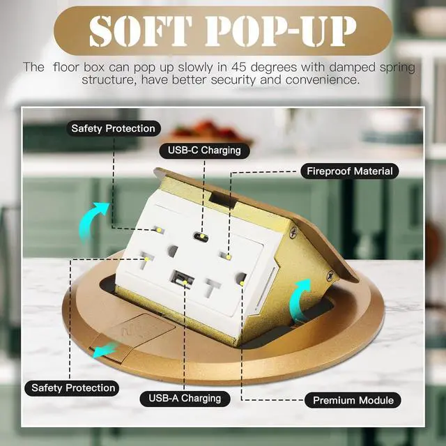 Wide Range of Use: the round pop up floor outlet is good for you to install on the hardwood, carpet, tile flooring applications, granite or marble kitchen countertops, tables or other places in residential or commercial environment, which will not take up so much space and keep the places tidy