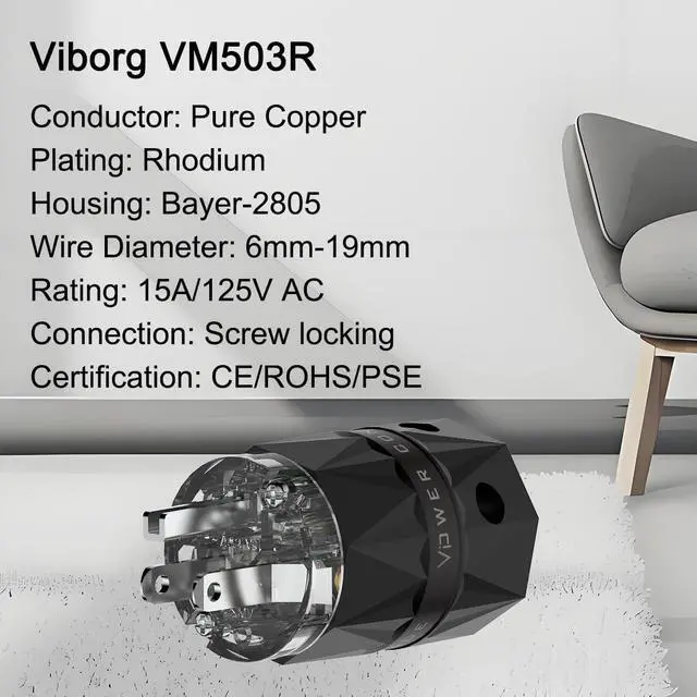 The Viborg VM503R HiFi power plug is designed for high-end audio equipment, with a rhodium-plated pure copper conductor that ensures superior conductivity and high-fidelity in audio signals.