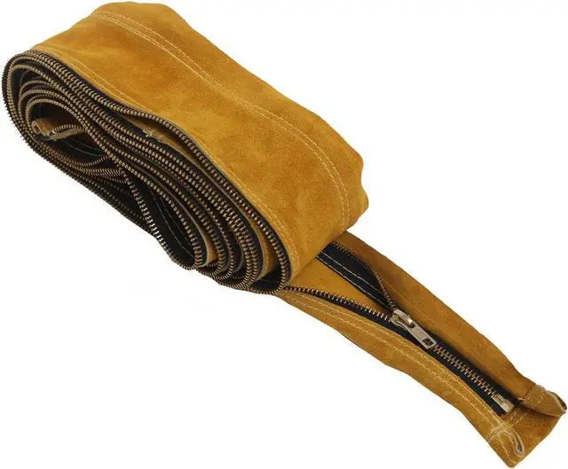 AP-9006ZL7 Golden Color 4" x 23' Split Cowhide Leather TIG Cable Sleeve with Zipper