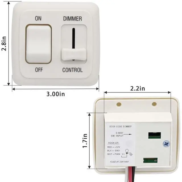 Toggle Dimmer Switch: 12 Volt DC Dimmer. Dims up to 60 watts (4.2 amps) of incandescent, halogen, or LED lighting reducing heat and power drain on batteries