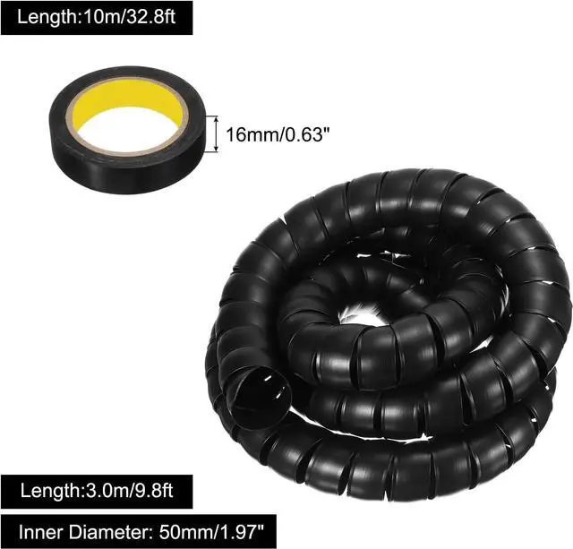 Length: 3.0m/9.8ft; Inner Diameter: 50mm/1.97 inch; Outer Diameter: 53mm/2.09 inch; Tape Size: 10m x 16mm/32.8ft x 0.63 inch (L*W); Material: PP; Color: Black