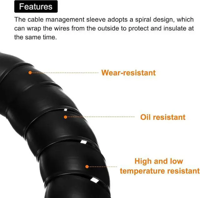 Using PP material, this spiral tube is flexible and reusable. It is wear-resistant, high and low temperature resistant, oil resistant, and has a long service life. The cable management sleeve adopts a spiral design, which can wrap the wires from the outside to protect and insulate at the same time.