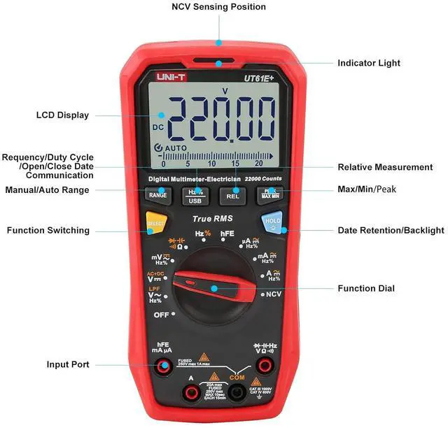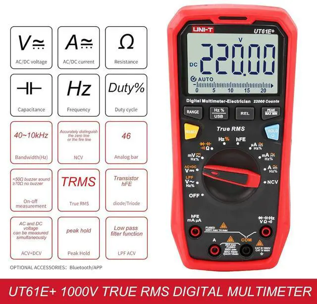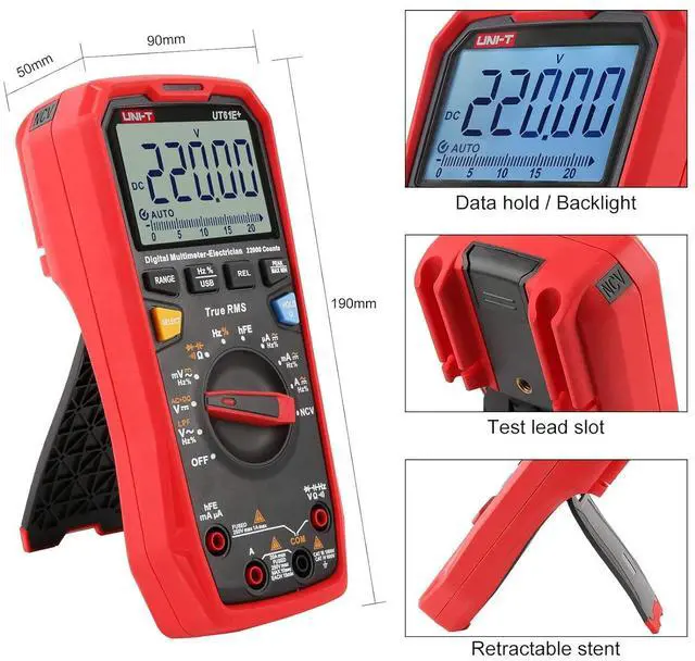 Features of UT61+ Series 1000V True RMS Digital Multimeters True RMS Data hold/backlight Max/Min/Relative mode USB communication