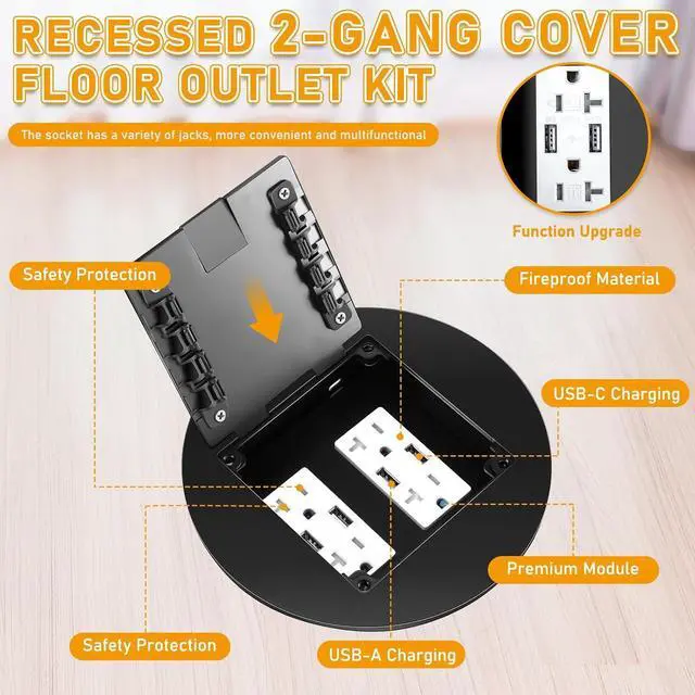 Etl-listed and Easy to Use: the tamper-resistant design ensures added protection; The recessed outlet box offers effortless convenience, simply flip open the cover when needed and close it when not in use, keeping your floor clear for safe passage and easy cleaning